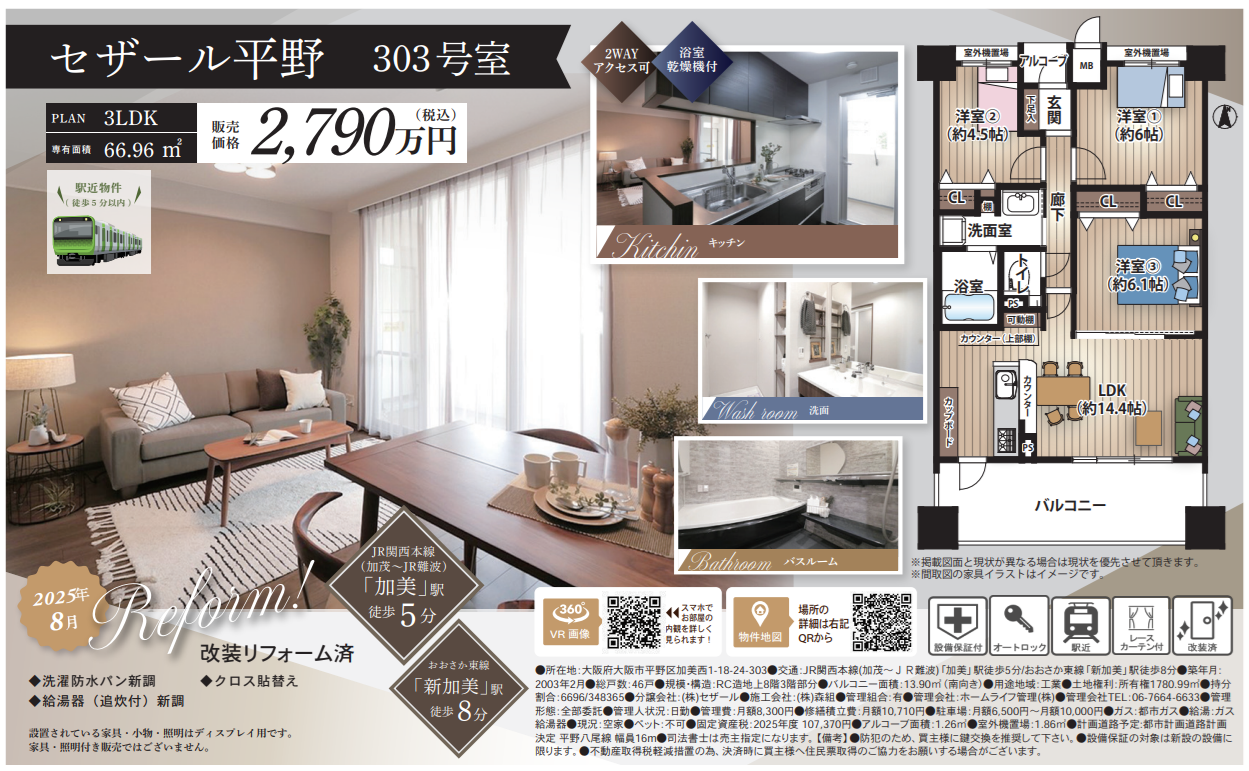 セザール平野303号室 2,790万円 平野区加美西