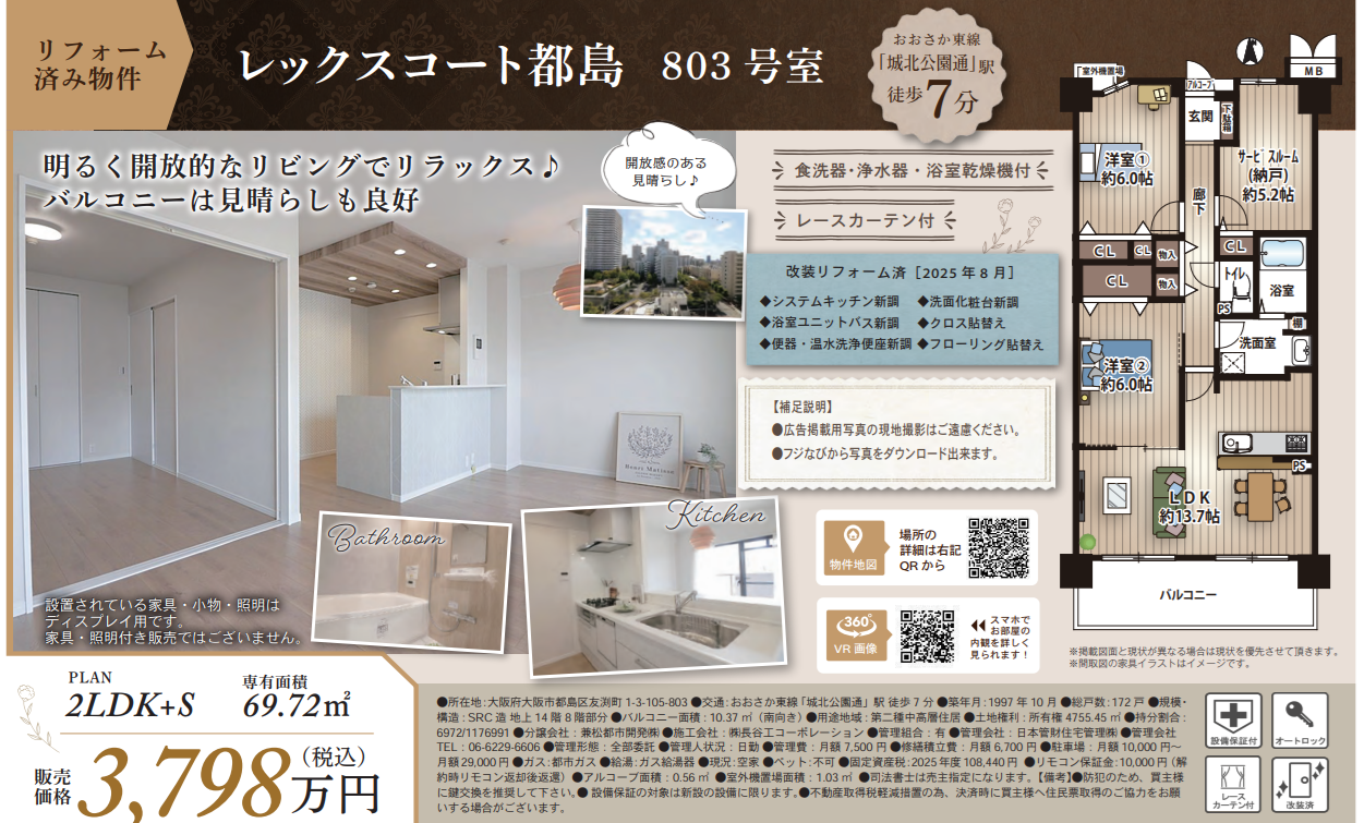 上記以外の物件も都島区の中古マンションは弊社をご利用頂きますと『仲介手数料最大無料、更にローン事務代行費用は無料』で購入できます。