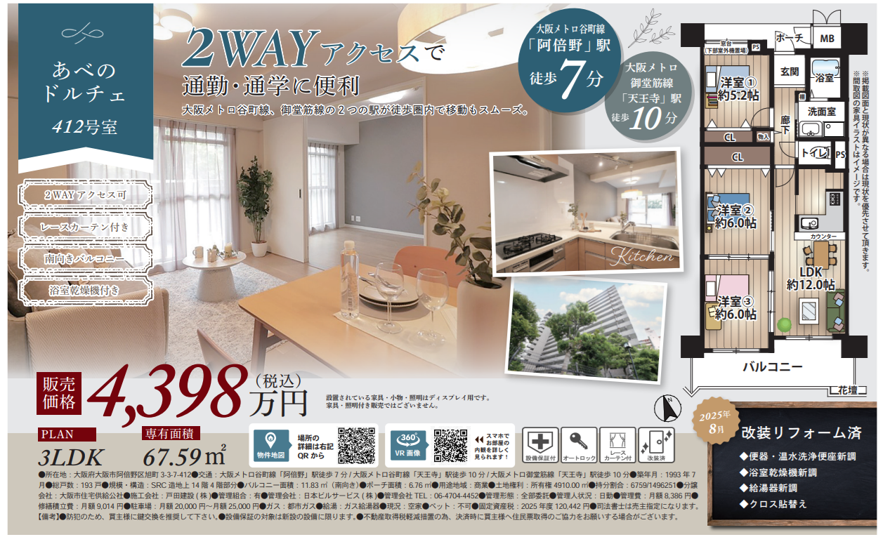 あべのドルチェ412号室 4,398万円 阿倍野区旭町