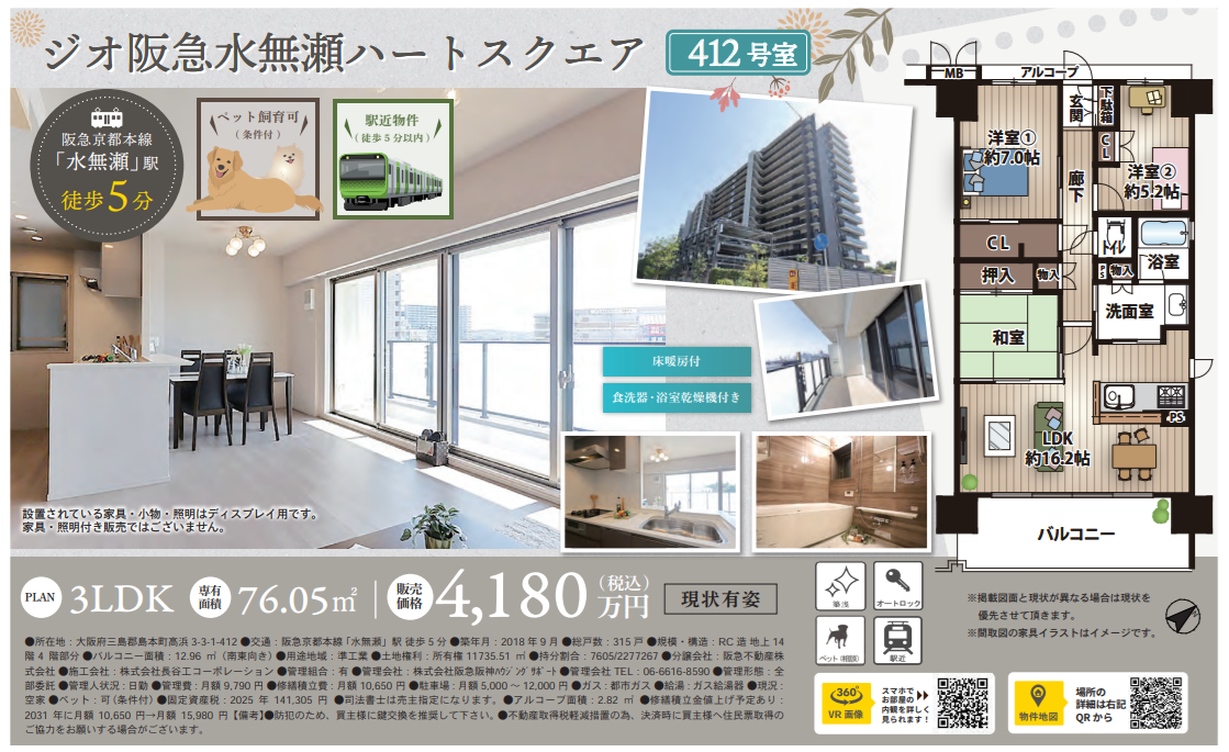 ジオ阪急水無瀬ハートスクエア412号室 4,180万円 三島郡島本町高浜