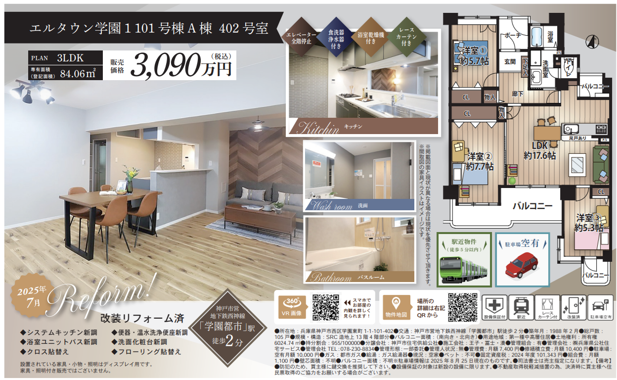 エルタウン学園1101号棟A棟402号室 3,090万円 西区学園東町