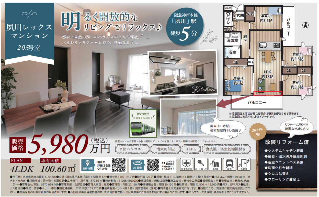 夙川レックスマンション205号室 5,980万円 西宮市霞町