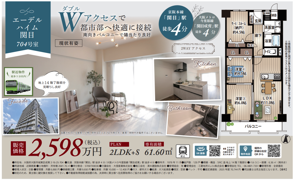 エーデルハイム関目704号室 2,598万円 城東区成育2丁目