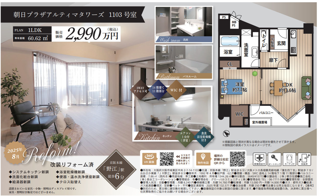 朝日プラザアルティマタワーズ1103号室 2,990万円 城東区中央2丁目