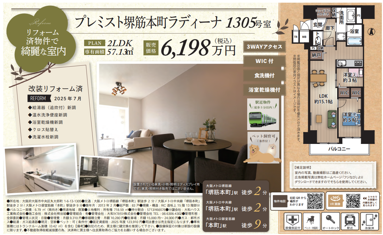 大阪市中央区【仲介手数料無料でご購入できる物件のご紹介】