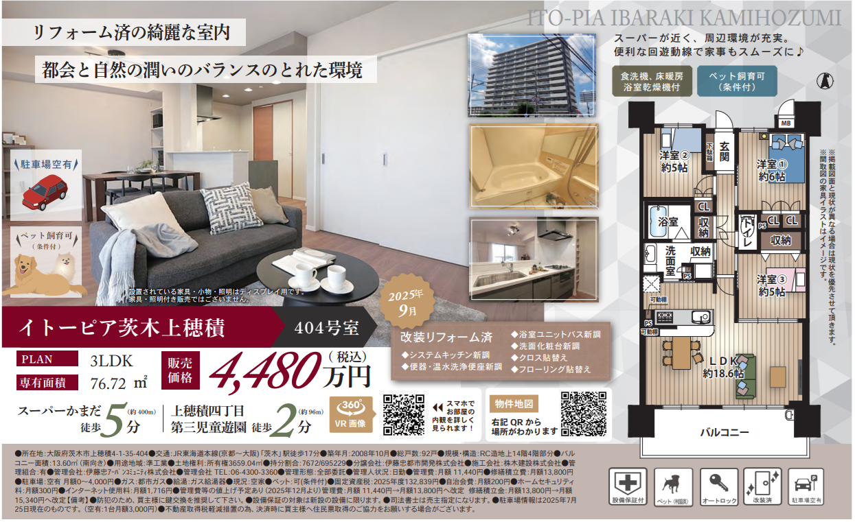 イトーピア茨木上穂積404号室 4,480万円 茨木市上穂積
